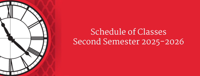Class Schedule Second Semester 2025-2026 0 By ADMIN on January 22, 2026 News, Undergraduate Academic Class Schedule — January 2026 The class schedule is subject to changes. Below is the version of the schedule as of January 22, 2026. The document has several pages. If the frame below does not scroll on your device click here.